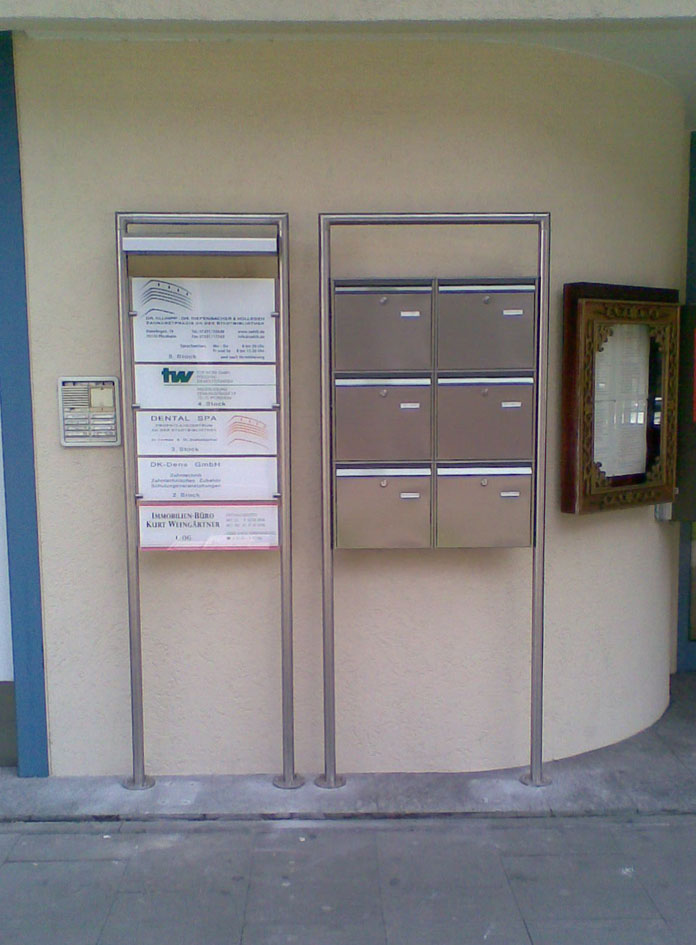 - Pforzheim, beleuchteter Edelstahl-Acryl-Aufsteller mit Briefkasten-Anlage
